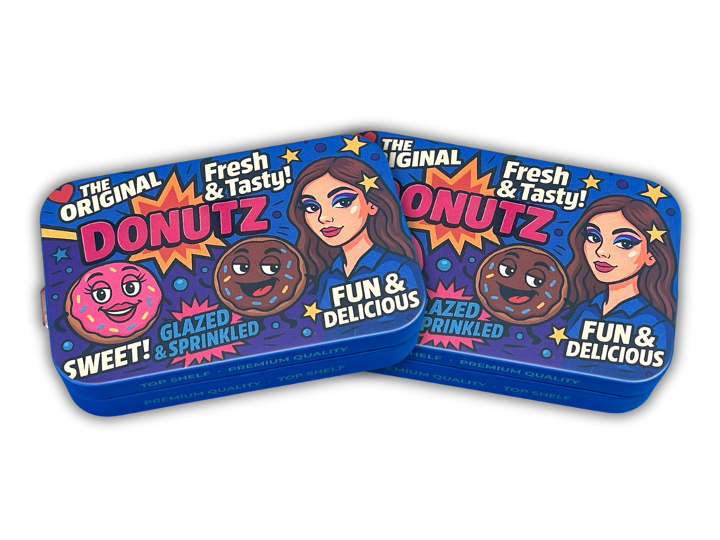 The Donutz Tin Can features colorful dessert-inspired artwork with playful graphics designed to stand out on display. This empty tin can is ideal for storage, packaging, or organizing small items while maintaining a clean, premium presentation.
