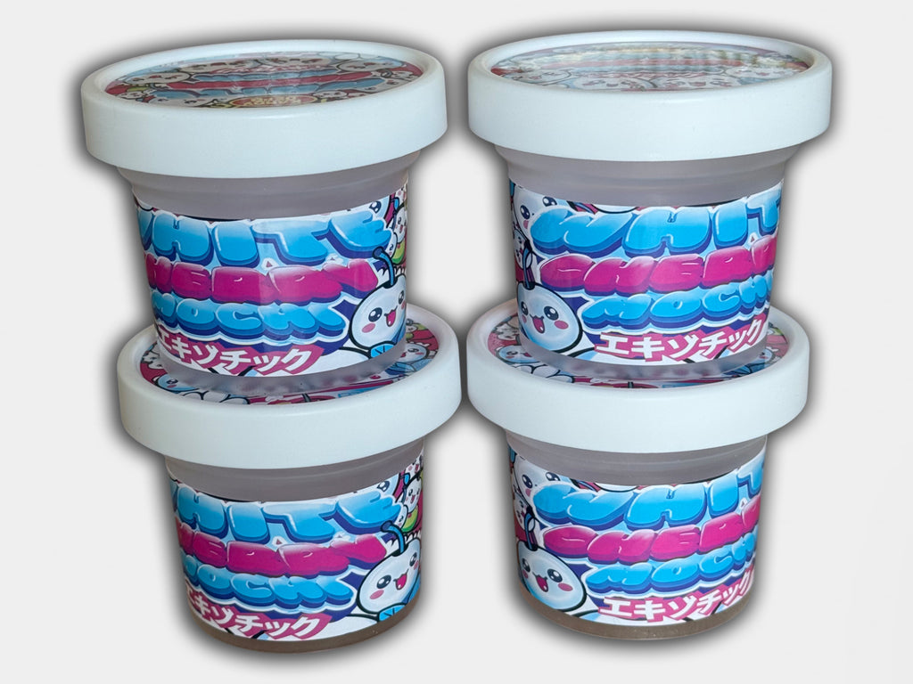 The White Cherry Mochi 4 Jar Set with Box features a cohesive, candy-inspired design paired with a premium ice cream–style jar presentation. This set delivers a polished, collectible look that stands out on shelves while maintaining a clean, professional finish.
